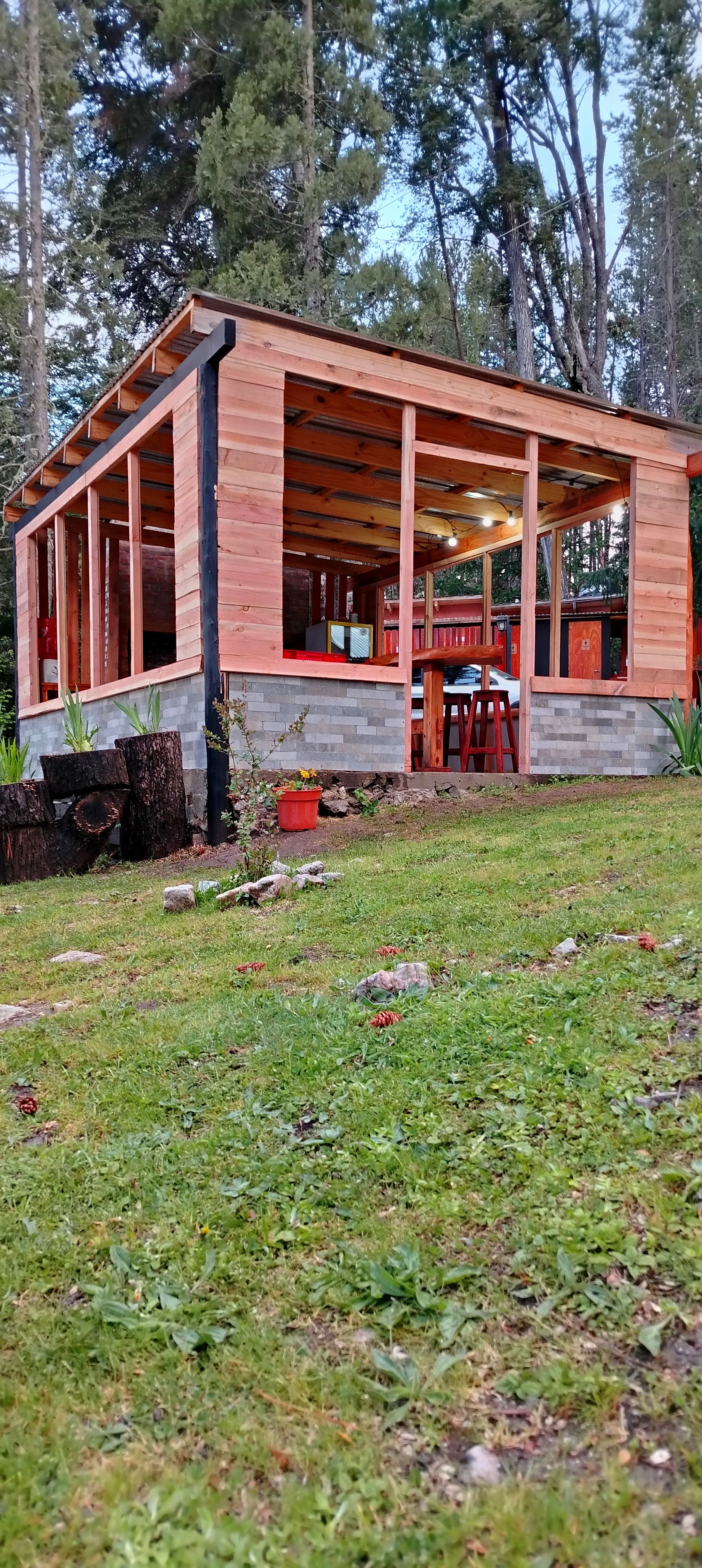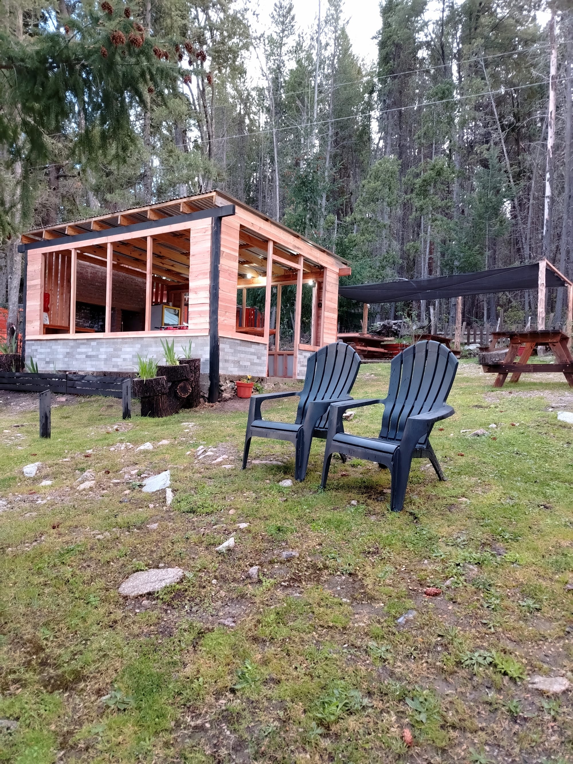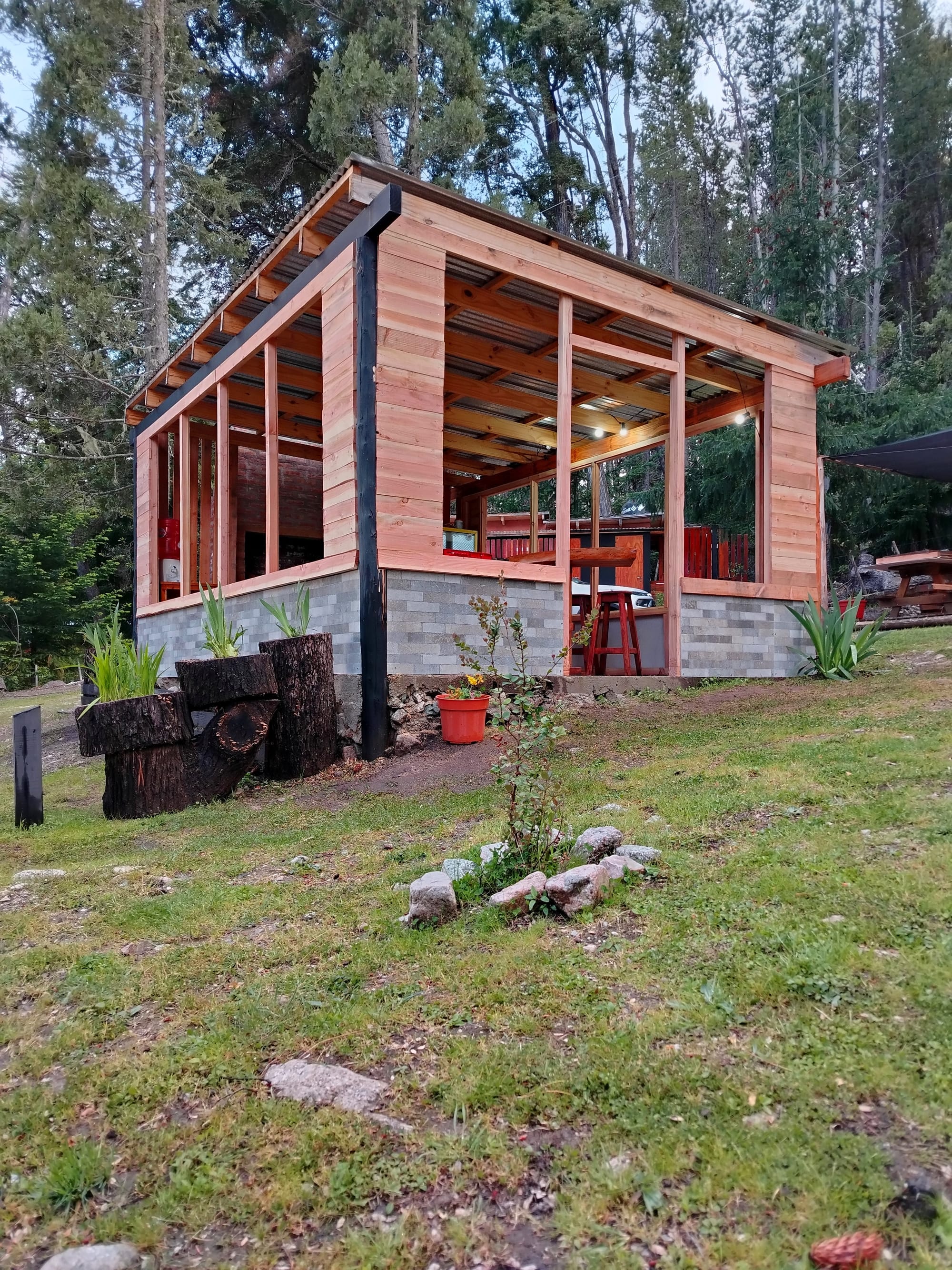 Aquí te mostramos uno de nuestros dormis para parejas, con cama matrimonial, calefacción eléctrica, pava eléctrica, deck privado con vista al lago, parrilla y fogón individual, conexión eléctrica interna y externa, duchas y baños compartidos para dormis únicamente, estacionamiento de vehículo, quincho abierto, y conexión a red wifi gratuita.